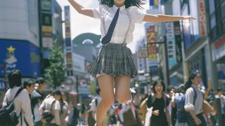和歌山県 紀の川市の路上で、ジャンプしてくれた女性たち ストリートスナップ