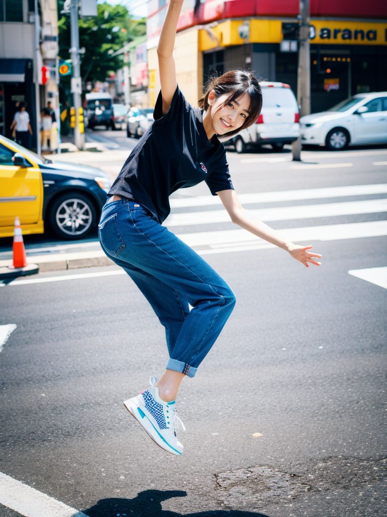 青森県 弘前市の路上で、ジャンプしてくれた女性たち ストリートスナップ