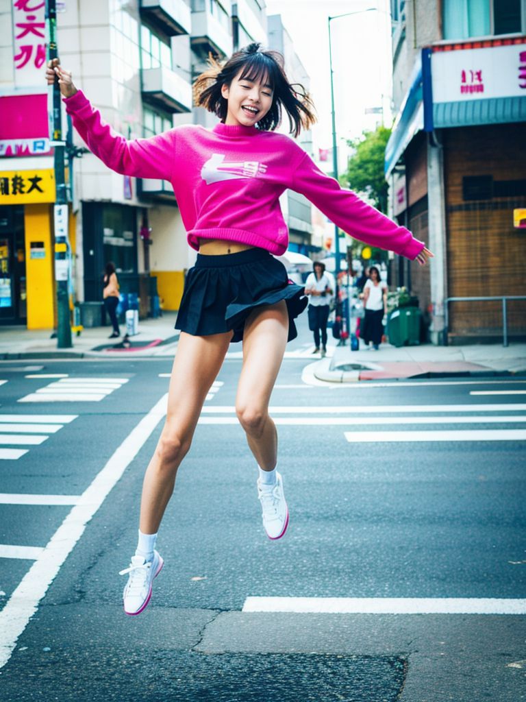 大阪府 岸和田市の路上で、ジャンプしてくれた女性たち ストリートスナップ