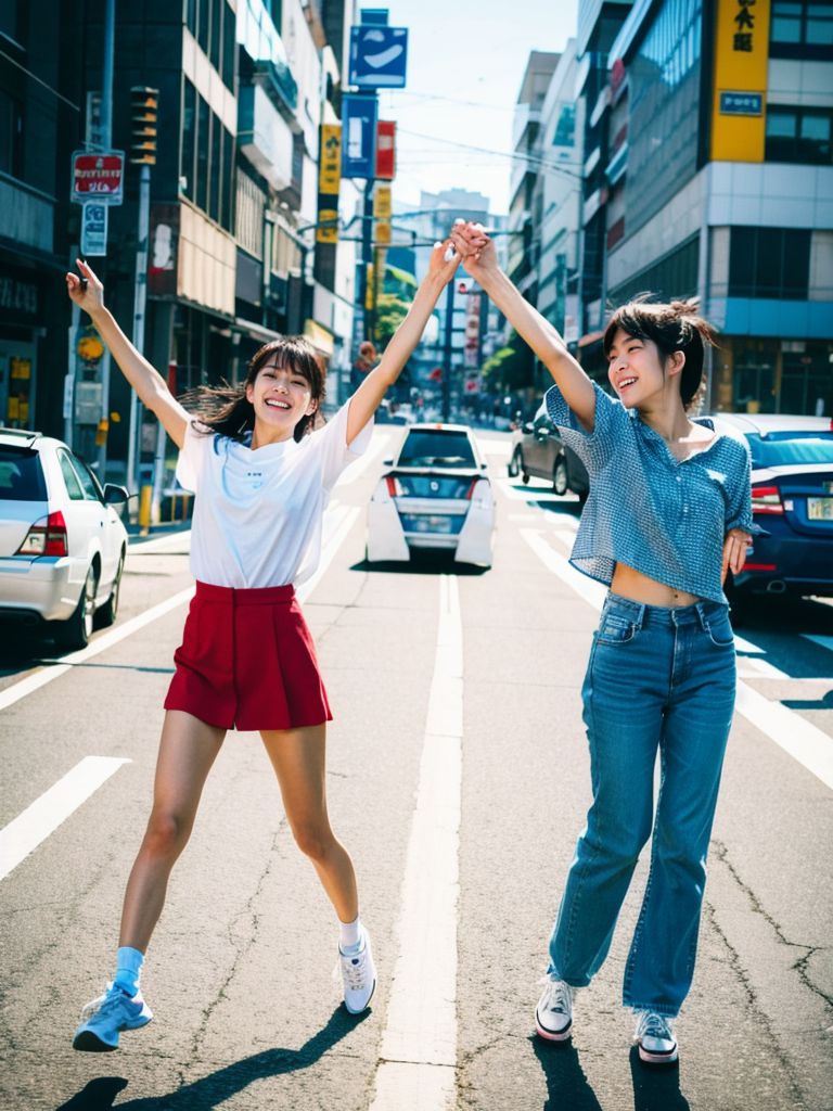 青森県 弘前市の路上で、ジャンプしてくれた女性たち ストリートスナップ
