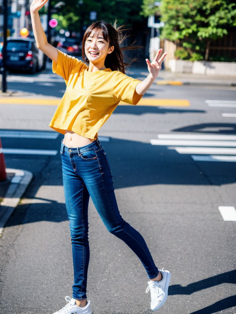 京都府 京田辺市の路上で、ジャンプしてくれた女性たち ストリートスナップ