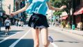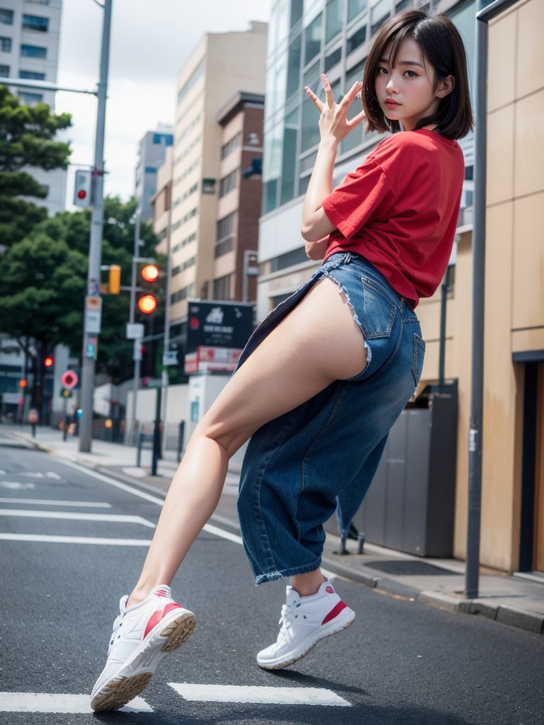 青森県 五所川原市の路上で、ジャンプしてくれた女性たち ストリートスナップ