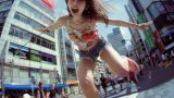 山梨県 南アルプス市の路上で、ジャンプしてくれた女性たち ストリートスナップ