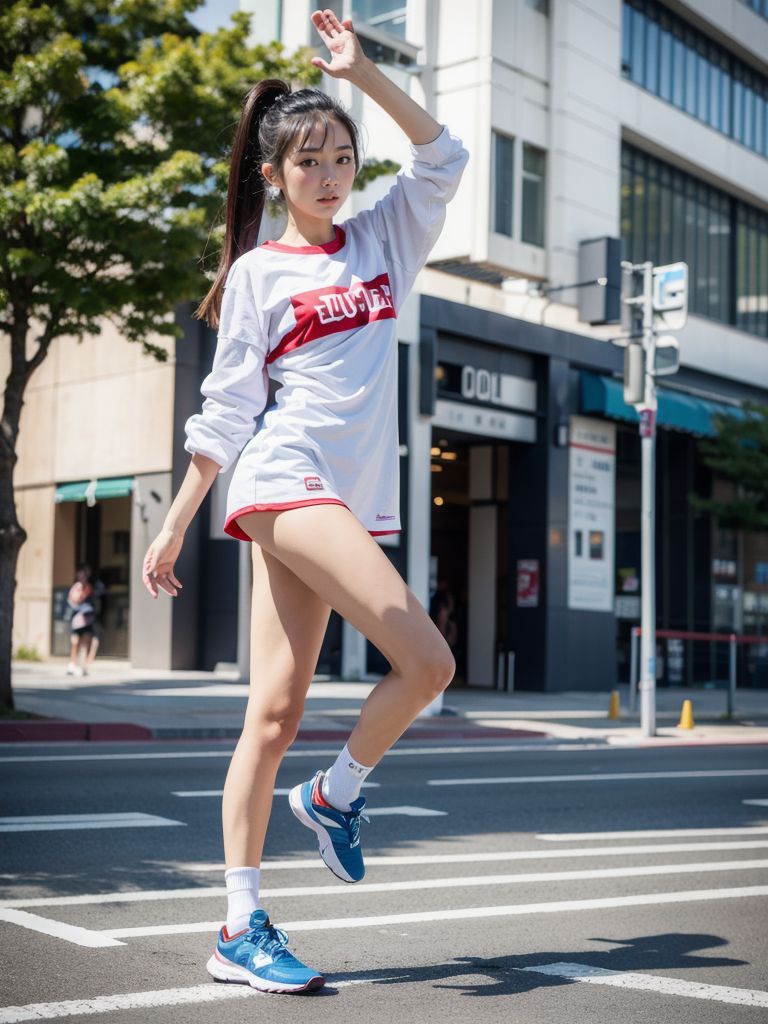 埼玉県 所沢市の路上で、ジャンプしてくれた女性たち ストリートスナップ