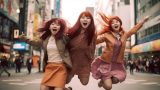 宮城県 大崎市の路上で、ジャンプしてくれた女性たち ストリートスナップ
