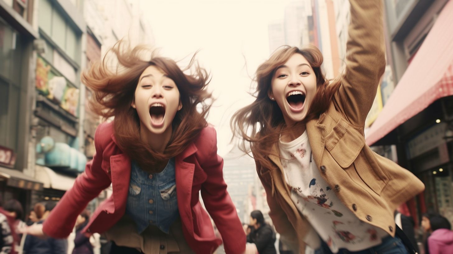 愛知県 津島市の路上で、ジャンプしてくれた女性たち ストリートスナップ