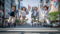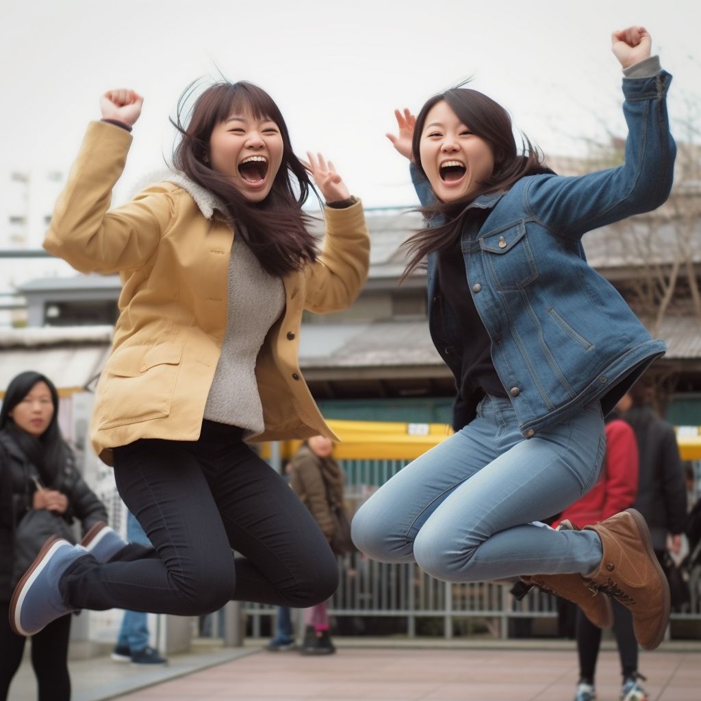 福岡県 古賀市の路上で、ジャンプしてくれた女性たち ストリートスナップ