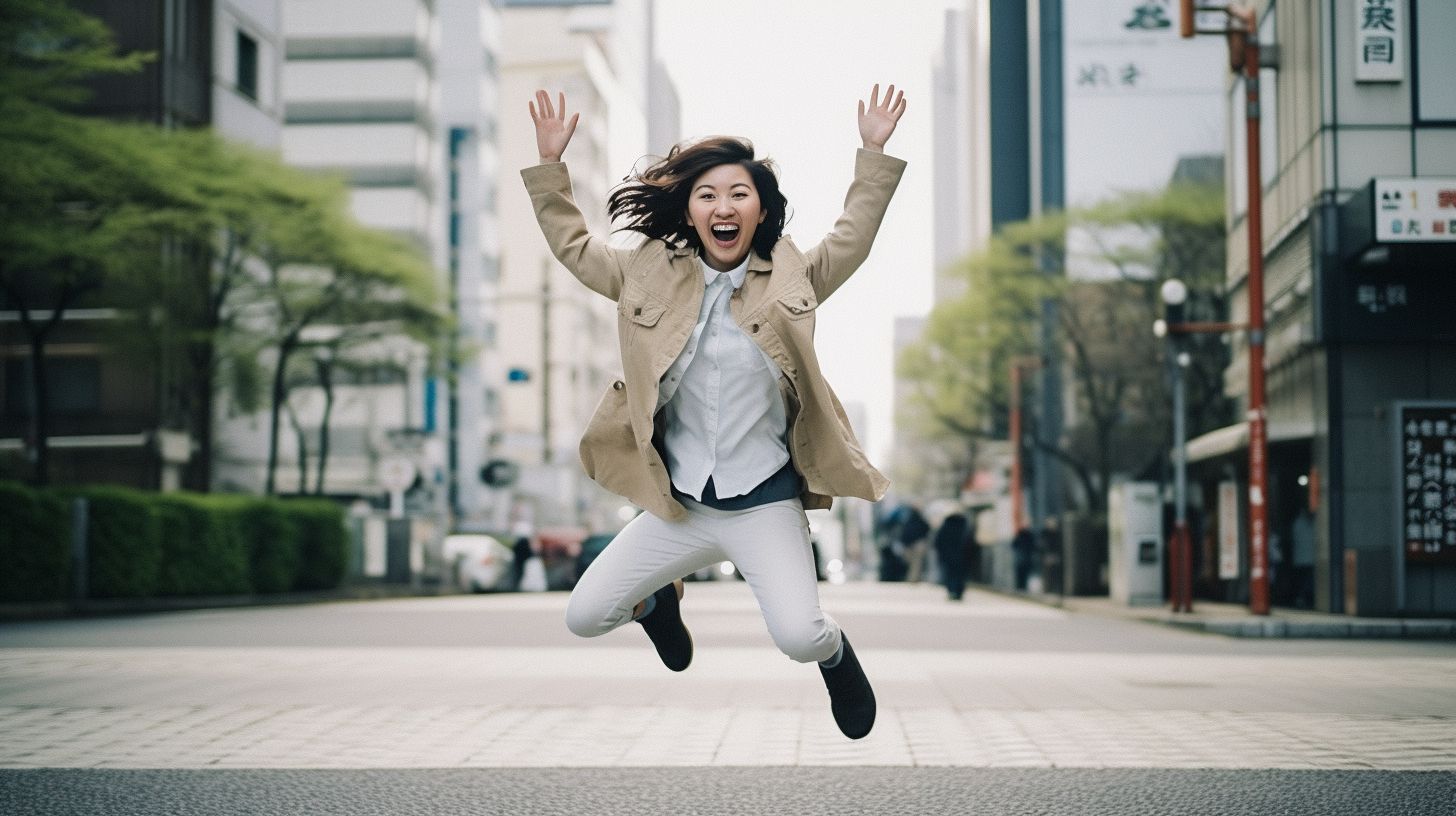 長野県 飯田市の路上で、ジャンプしてくれた女性たち ストリートスナップ