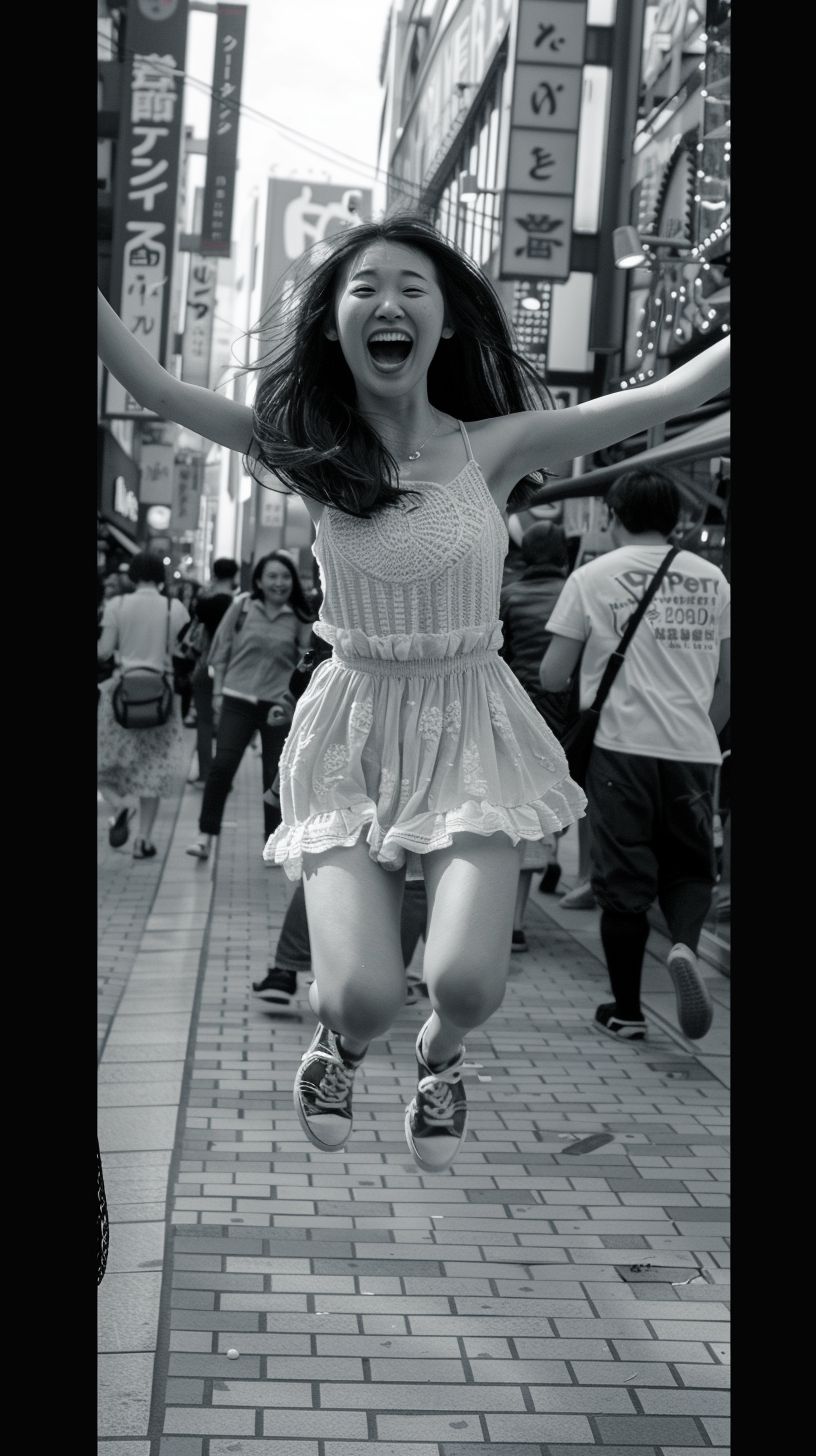 埼玉県 志木市の路上で、ジャンプしてくれた女性たち ストリートスナップ