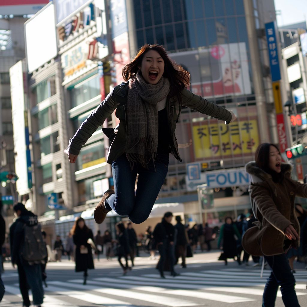 神奈川県 伊勢原市の路上で、ジャンプしてくれた女性たち ストリートスナップ