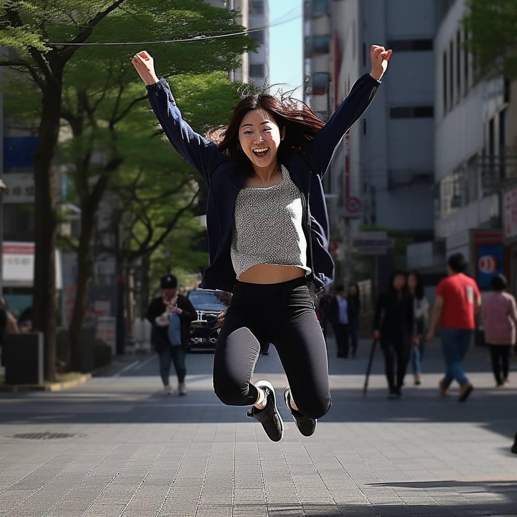 ジャンプした気分は? → こんなとこ(駅前)で飛んだことが無かったので、良い経験になりました。