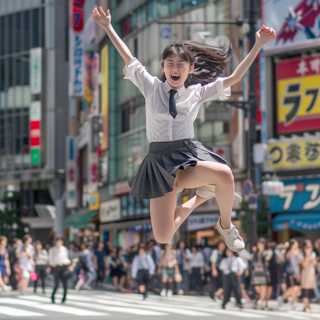 埼玉県 北本市の路上で、ジャンプしてくれた女性たち ストリートスナップ
