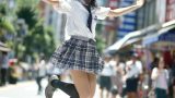 大阪府 豊中市の路上で、ジャンプしてくれた女性たち ストリートスナップ