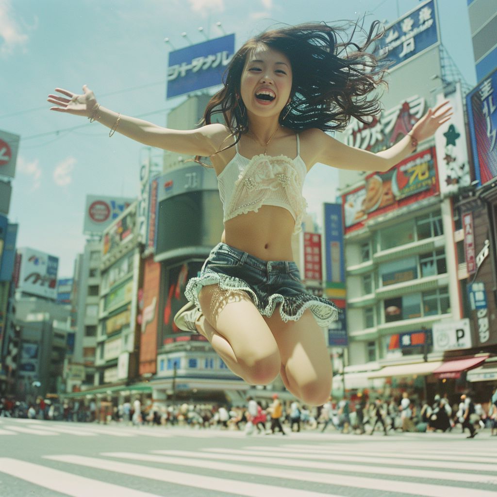 石川県 金沢市の路上で、ジャンプしてくれた女性たち ストリートスナップ
