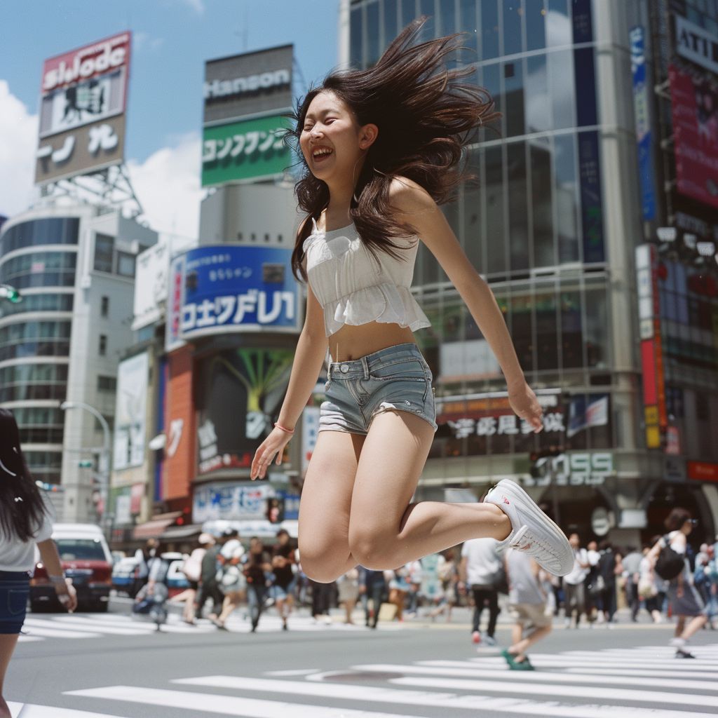 徳島県 徳島市の路上で、ジャンプしてくれた女性たち ストリートスナップ