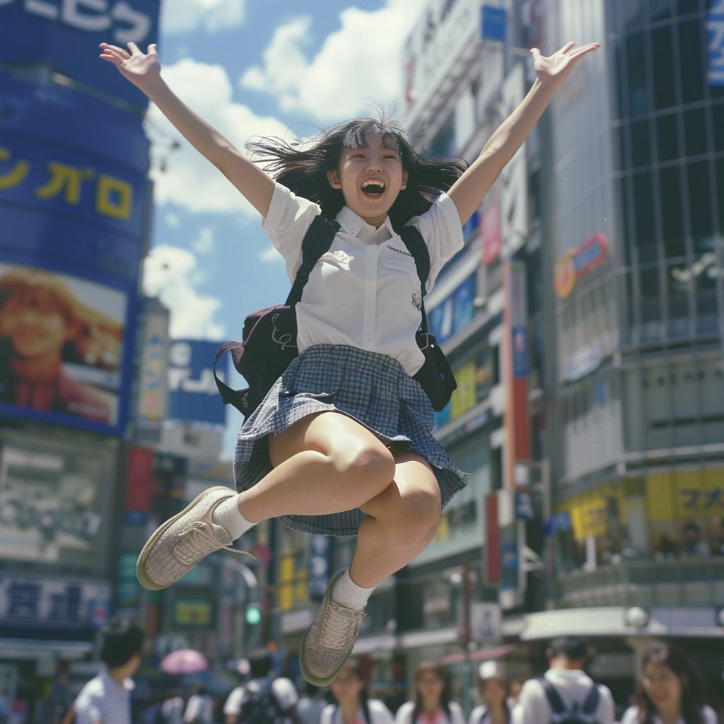 長崎県 佐世保市の路上で、ジャンプしてくれた女性たち ストリートスナップ