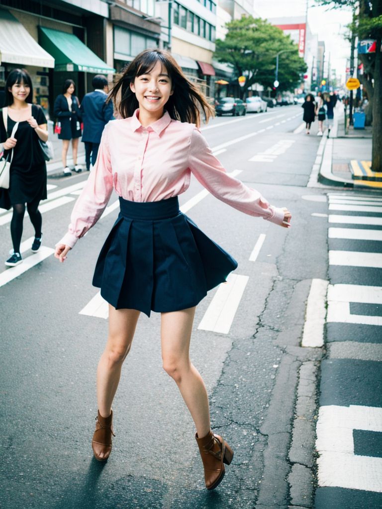 埼玉県 所沢市の路上で、ジャンプしてくれた女性たち ストリートスナップ