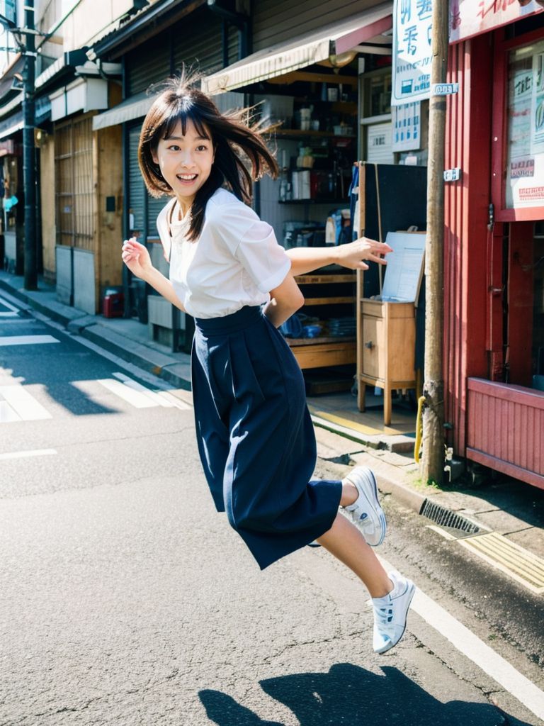 山形県 米沢市の路上で、ジャンプしてくれた女性たち ストリートスナップ