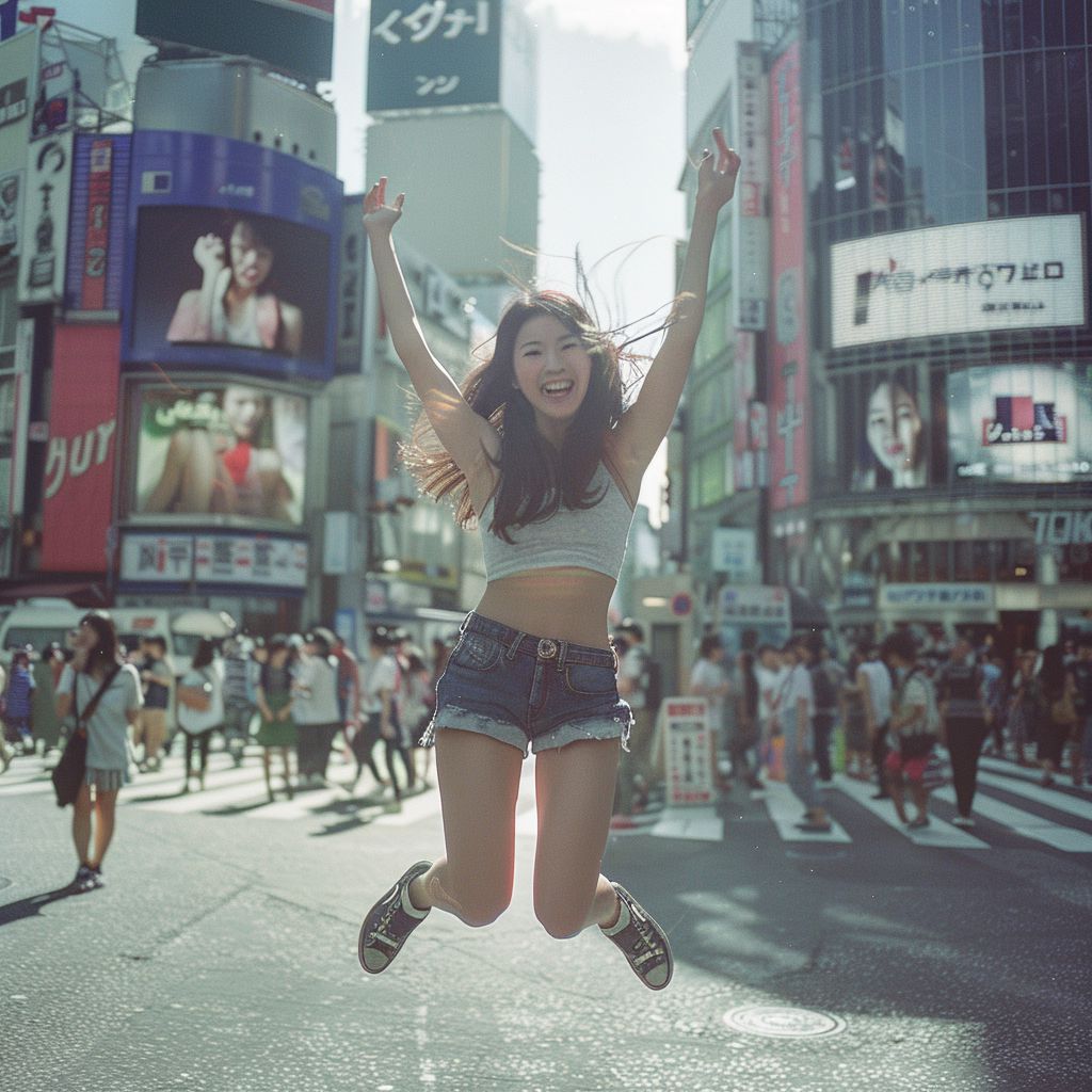 東京都 羽村市の路上で、ジャンプしてくれた女性たち ストリートスナップ