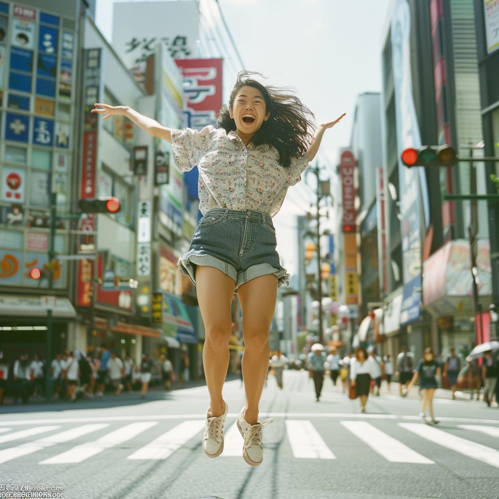 岡山県 岡山市の路上で、ジャンプしてくれた女性たち ストリートスナップ