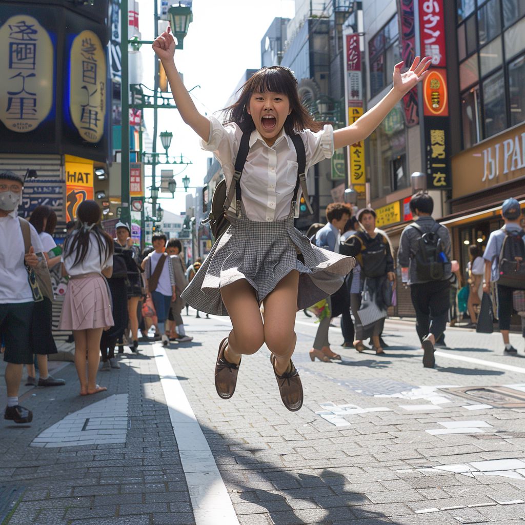 大阪府 泉大津市の路上で、ジャンプしてくれた女性たち ストリートスナップ