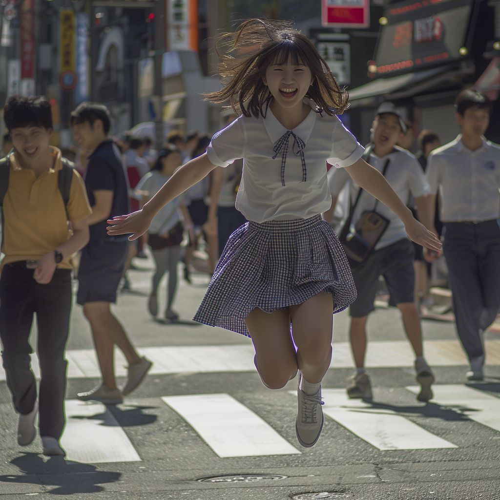 愛知県 蒲郡市の路上で、ジャンプしてくれた女性たち ストリートスナップ