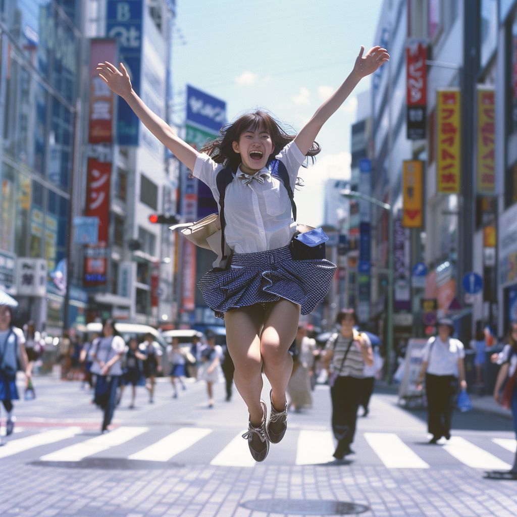 滋賀県 栗東市の路上で、ジャンプしてくれた女性たち ストリートスナップ