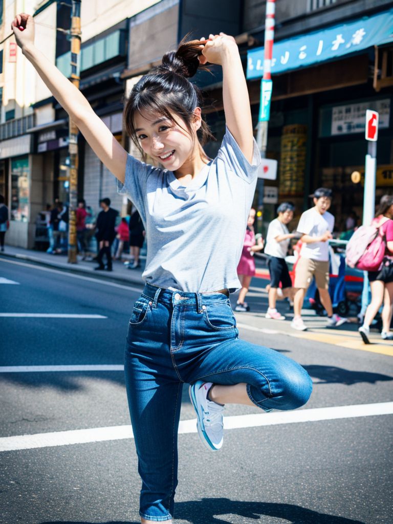 埼玉県 上尾市の路上で、ジャンプしてくれた女性たち ストリートスナップ
