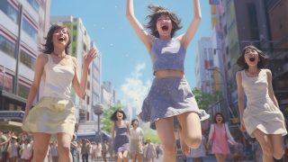 三重県 津市の路上で、ジャンプしてくれた女性たち ストリートスナップ