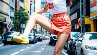 青森県 五所川原市の路上で、ジャンプしてくれた女性たち ストリートスナップ