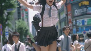 大分県 佐伯市の路上で、ジャンプしてくれた女性たち ストリートスナップ